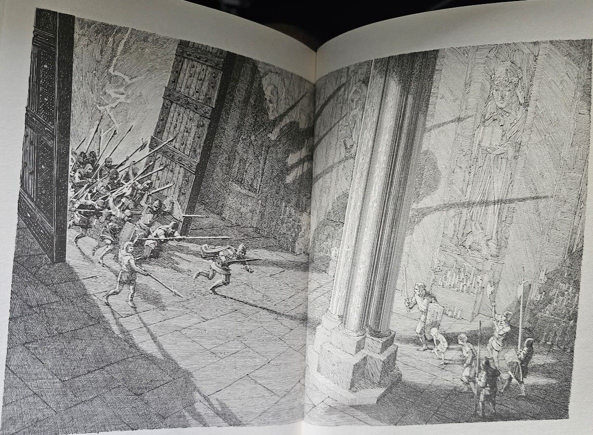 I can’t believe I’ve not mentioned the illustrations yet! (Although I will no doubt have them scattered throughout the review after I’m done writing anyway). I’m a sucker for illustrated books, I really am. If I had it my way, every single book I read would be illustrated. I just think it adds such charm and is the cherry on top. Usually, when a book is illustrated there tends to be one every 30-50 pages or so. Not with this one… There’s illustrated pages more than there aren’t. There must be over 100 illustrations by Gary Gianni in this thing, and that’s insane! (There’s over 160 I just googled). These pencil drawings definitely helped bring these characters to life, either highlighting the humour of the moment.
