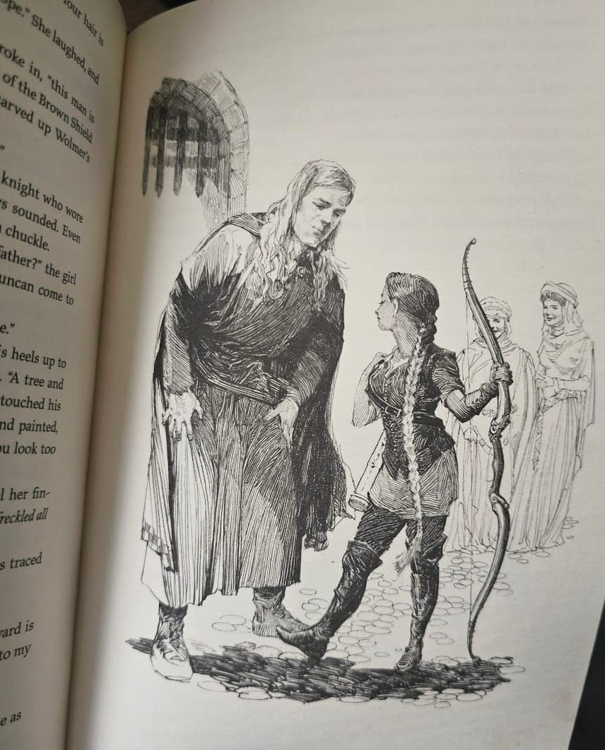 The pacing did seem to slow down somewhat, by the time of the second Novella - The Sworn Sword. Here we see Dunc and Egg wrapped up in a feud revolving around a drought in the land, and a dam being built to limit water supply to neighbouring houses. This novella is much more politically forward than the others, which tends to me more tailored to my tastes, yet I found myself enjoying this one the least of the three. The pace definitely picks up after a while though, and I ended up really enjoying it by the end. It was funny seeing our loveable dork, Dunc, fumble his way to flirting.