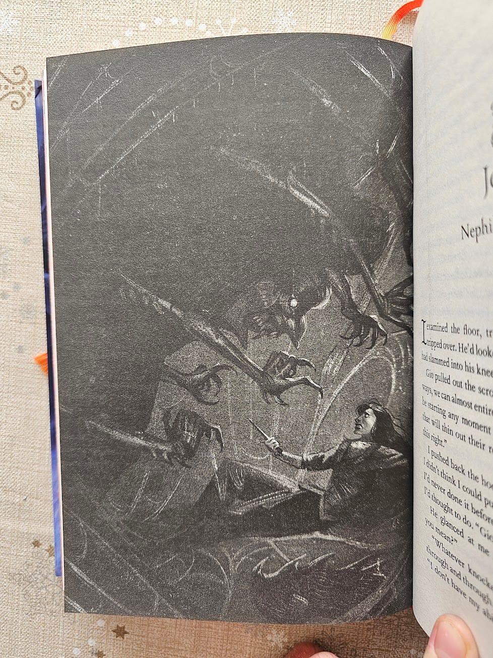 The bone shard magic is actually really dark. I’ll admit that it took me a while to figure out because I didn’t know what the word ‘trepanning’ meant and didn’t think it was important. Turns out, it was very important! So, my understanding is that when children reach a certain age, they attend the tithing festival where an area of their skill is chiselled to release a bone shard. The Emperor then uses this bone shard to animate the constructs. However the person, from which the bone shard was extracted, can experience ‘shard sickness’ from extensive use of their bone shard. This fatal sickness can creep up on you without you even realising sometimes. I wonder if the use for the bone shards has capabilities outside of constructs. We know that other magic exists in this world, we’ve seen that with Mephi and Jovis, so I am intrigued. Speaking of, I spent the whole book wondering what kind of magic was featured on the Broken Binding edition naked cover.